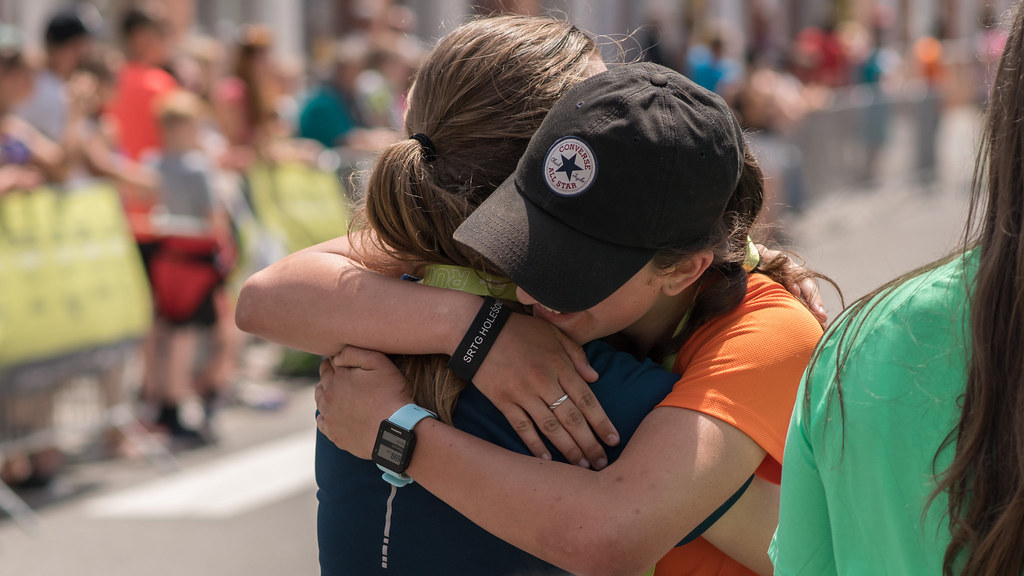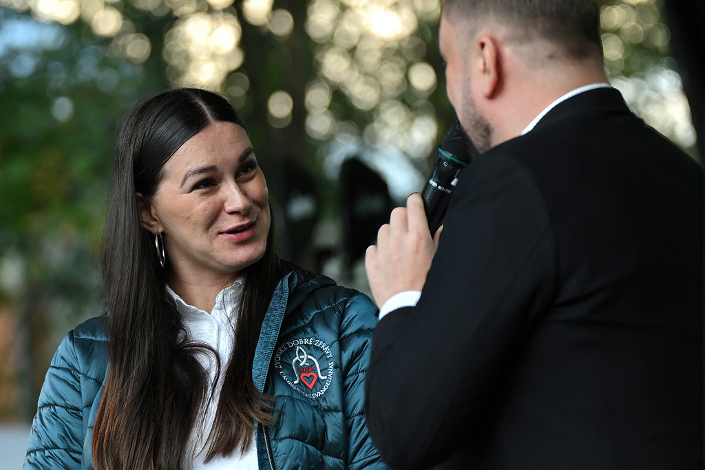 Konečně v cíli. Unavená, bez dechu… ale šťastná. Na krku se houpe pamětní medaile, ale oči hledají něco jiného.